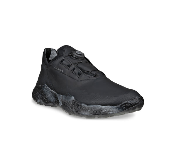 Inspired by the wild and rugged nature of the Scottish Highlands, and powered by exclusive Danish technologies, the ECCO M GOLF BIOM H5 BOA is a new performance golf shoe built for the elements. If many consider Scotland to be the home of golf, Denmark is driving innovations in the sport: state-of-the-art ECCO-TEX waterproof membrane will keep your foot dry and comfortable in wet conditions. For a modern, sporty aesthetic as well as all-day comfort, this next generation BIOM golf shoe is crafted from ECCO Performance Leather with a one-piece engineered knit sock, while the BOA® Fit System delivers micro-adjustable precision fit. Along with a snug fit, the BIOM® NATURAL MOTION® technology creates stability and forward momentum for power during your swing. Wherever your round, and your day, takes you, the new and innovative outsole delivers stability and traction.