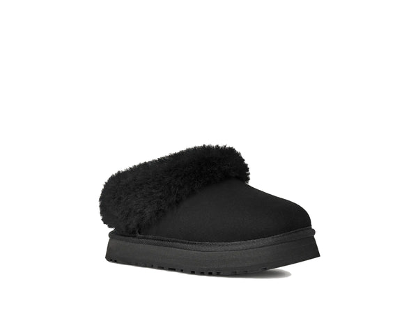 Love the Tazz but want even more UGG® coziness? Our Tazzelle is the one for you. This ultra-plush indoor-outdoor slipper features genuine suede and a lightweight 1" platform made from springy sugarcane EVA. Sheepskin lines the interior and continues onto the lush fixed cuff, so little ones can wear these with socks, or without. Make sure to snag a matching pair in our Women's collection for a coordinated family moment.