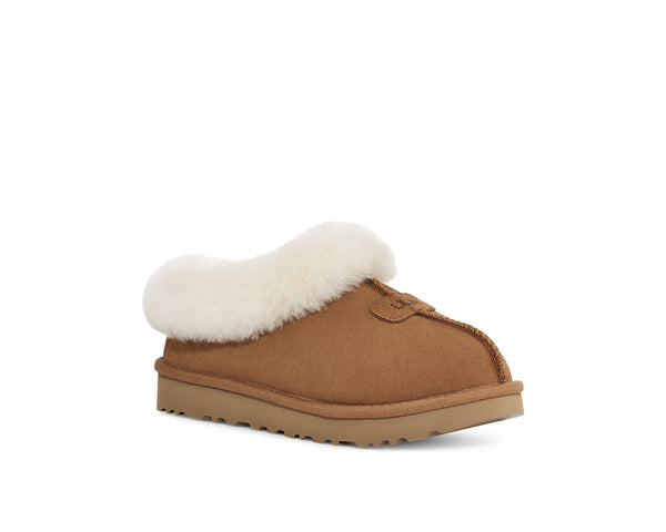 A slipper for all occasions, our best-selling Tazzette features the same light, durable outsole as our Classic Boot, so you can wear it both indoors and out. Lined with plush sheepskin and upcycled wool, it's crafted from soft suede with an embroidered braid and easy slip-on silhouette. Pair with boyfriend jeans and a knit sweater. This product was made in a factory that supports women in our supply chain with the help of HERproject, a collaborative initiative that creates partnerships with brands like ours to empower and educate women in the workplace.